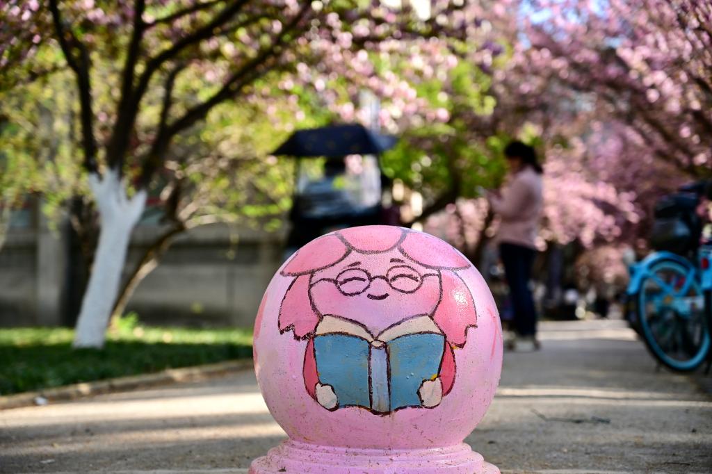 春和景明,樱香满径。为迎接即将到来的130周年校庆,营造温馨雅致的校园环境,近日,崇实书院、人文学院协同保卫处发起石墩美化活动,以匠心绘美景,以行动贺校庆。活动得到了艺术系学子的热烈响应,他们不仅主动承担创作任务,更以艺术感染力带动更多的师生、行人加入。原本冰冷的石墩成为承载校庆祝福与青春创意的立体画卷,生动诠释了“校方搭台、学生唱戏,全员参与、双向奔赴”的校园共建理念。