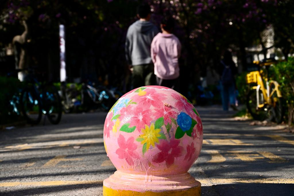 谭蕙妍:在校园里把石墩画上樱花,是件温柔又治愈的小事。一笔一画勾勒花瓣,让冰冷的石墩变得柔软浪漫。看着它们在路边静静“绽放”,既装点了校园,也给自己留下了满满的成就感。原来用心创造美好,平凡角落也能开出绚烂。