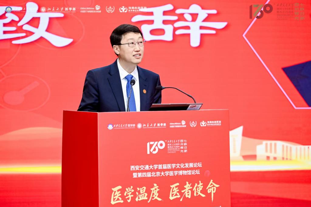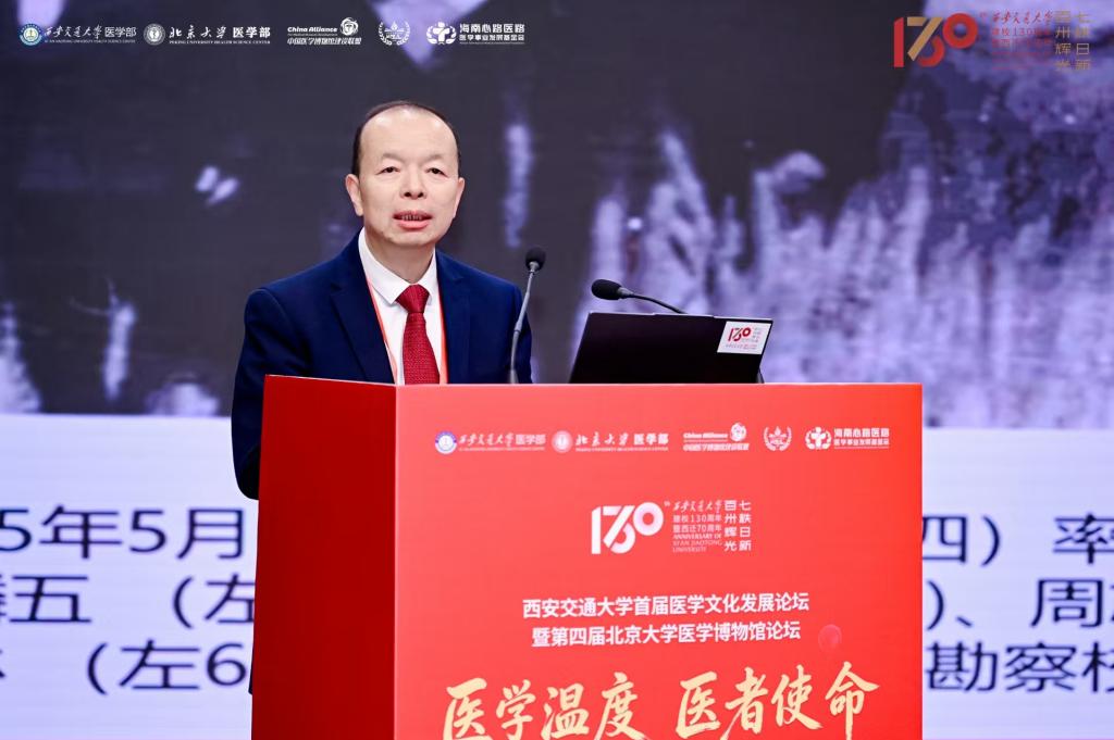 近日,西安交通大学首届医学文化发展论坛暨第四届北京大学医学博物馆论坛在西安交通大学举行。本次论坛由西安交通大学医学部、北京大学医学部联合主办,中国医学博物馆建设联盟、西部医学教育联盟、海南心路医路医学事业发展基金会联合承办,以“医学温度 医者使命——向西而歌耀启医学文化”为主题,汇聚院士专家、行业领袖与青年学者,共话医学文化传承、共商医工交叉融合、共谋数智医学发展。累计吸引来自全国高校、医疗机构、文博单位及企业界的线下参会代表700余人,论坛同步直播,线上观看总人次达147万人次。
