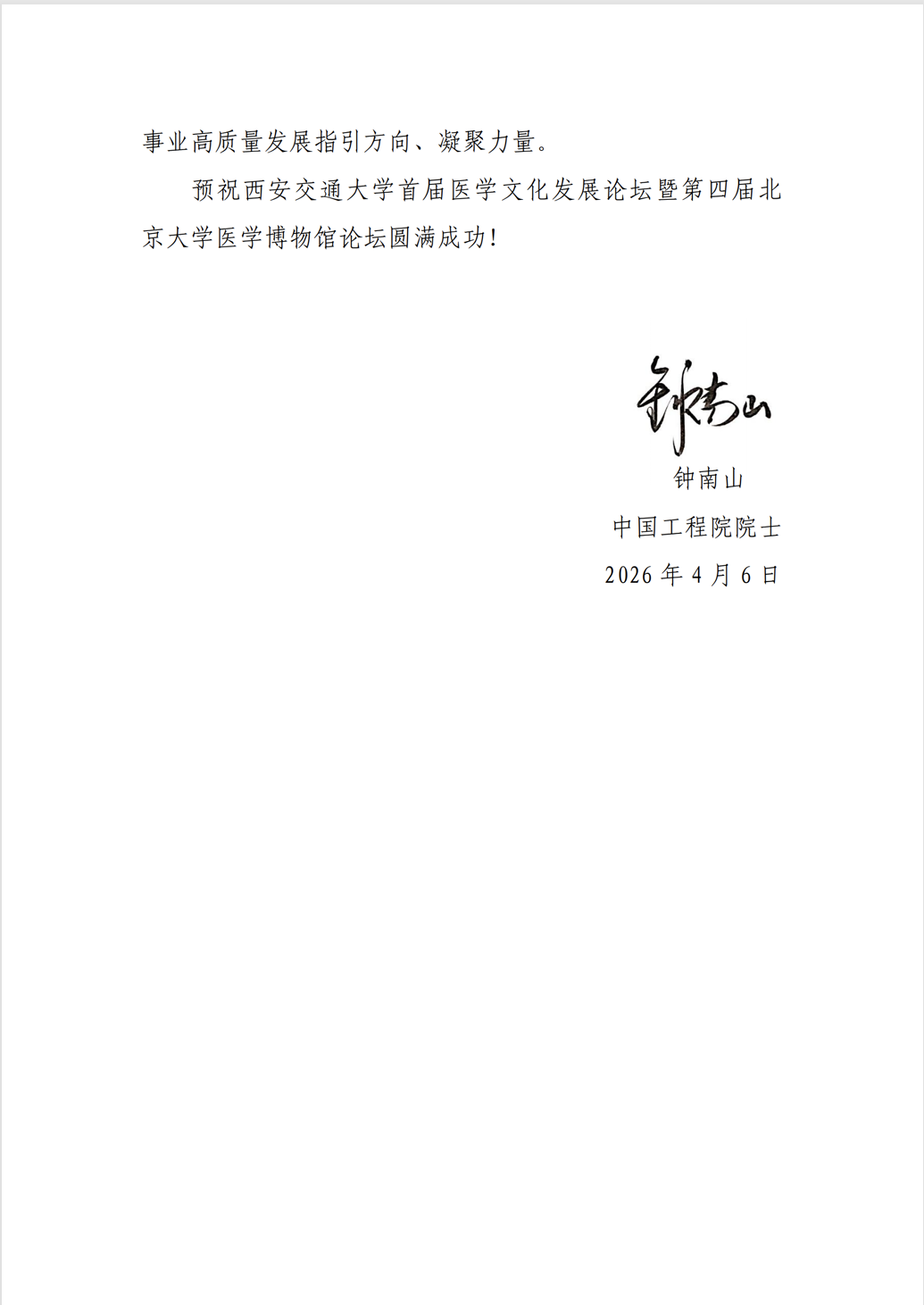 钟南山院士贺信致辞,高度肯定建设医学博物馆的重要意义,并寄语联盟与论坛发挥协同合力,共同推动我国医学博物馆事业高质量发展。