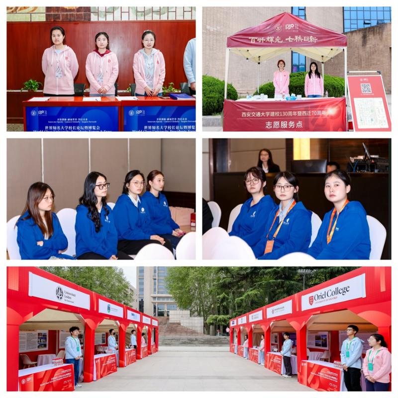 同时,学院组织百余名多语种本科学生志愿者,及近20名MTI翻译研究生,组建起一支专业过硬、作风扎实的志愿者服务队伍,为来自五大洲22个国家和地区、46所大学及教育科研机构的校长及代表,提供专业、高效的会议和陪同口译服务,其中包括“纪念西安交通大学建校130周年暨西迁70周年——中国特色、世界一流大学高校质量发展大会”和“世界知名大学校长论坛暨博览会”两项校级核心涉外活动,用热情的态度和流畅的语言搭建起跨文化沟通的桥梁。