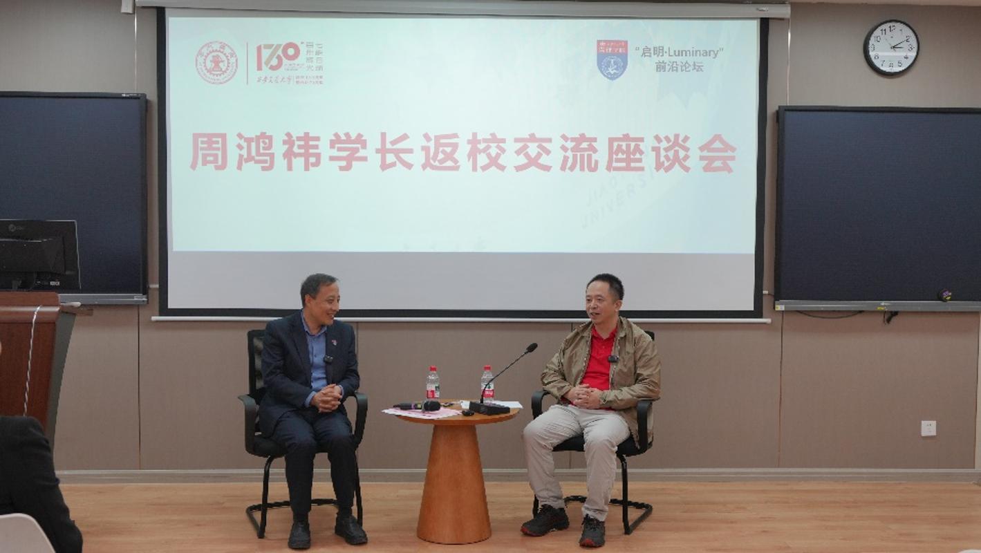 在西安交通大学建校130周年暨西迁70周年之际,为搭建校友与在校师生深度交流平台,近日,管理学院举办“启明・Luminary”前沿论坛,特邀西安交大校友、360集团创始人、董事长周鸿祎,与师生围绕AI驱动下的管理创新与商业模式重构展开座谈交流。西安交通大学教育基金会秘书长邢晓强,电信学部党委书记梁莉,管理学院党委书记马晓彬,计算机学院院长张兴军,软件学院院长王伟,网络空间安全学院党总支书记韩博,管理学院副院长舒成利、赵玺,管理学院党委副书记叶宁,各学院教师代表,越杰班、电信学部、管理学院学生代表等参加了本次座谈。座谈会由马晓彬主持。