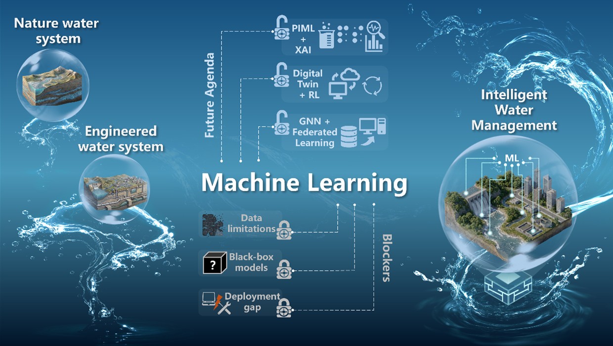 水是支撑生命繁衍、生态稳定和经济社会发展的基础性自然资源,其数量与质量直接关系生态安全、粮食生产与公共健康。随着全球工业化、城镇化和农业活动持续推进,自然水系统与工程水系统正面临日益严峻的环境与运行压力:在自然水系统中,河流、湖泊、地下水等受到富营养化、重金属累积和面源污染等多重扰动;在工程水系统中,供排水基础设施老化、水质风险上升、运行调控复杂化等问题也日益突出。传统水环境研究和管理方法主要依赖机理模型、统计模型及人工采样分析,普遍存在参数依赖强、校准成本高、计算开销大、时空代表性不足等局限,已难以满足复杂水系统对精准预测、实时感知和智能决策的迫切需求。在此背景下,机器学习凭借其在非线性映射、多源异构数据融合和高维特征挖掘方面的突出优势,正成为推动水系统研究范式变革的重要技术路径。