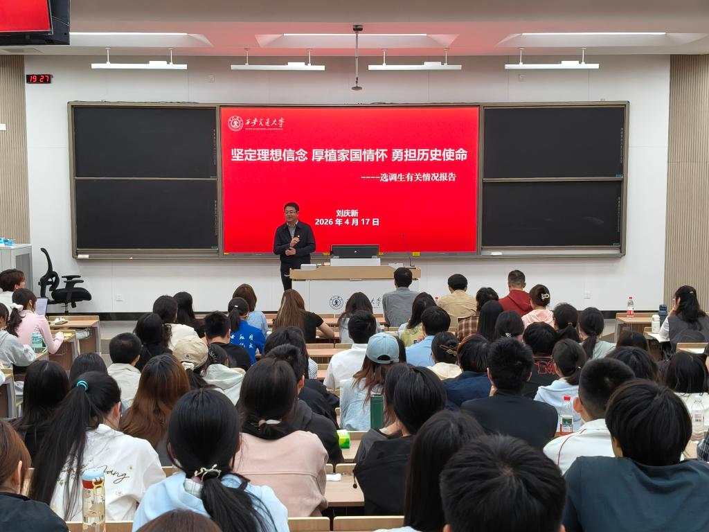 西安交通大学党委组织部副部长刘庆新应邀作专题报告,崇实书院党总支书记、院务主任段继超,党总支秘书薛成,辅导员李瑞昕出席,书院170余名入党积极分子参加学习。