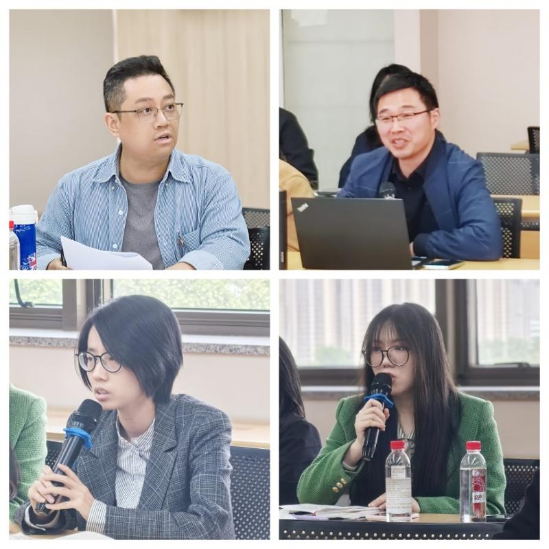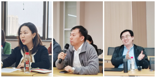 在“共建共融促提升——教师代表为机关工作提质增效建言献策”环节,党员教师们积极建言。贺力围绕教师成长与教材编写、郝明松聚焦学术发表与绩效评价、赵一青呼吁持续扩大共建范围、何静建议搭建跨学科资源共享平台,分别提出了建设性建议。现场互动热烈,达成诸多共识。