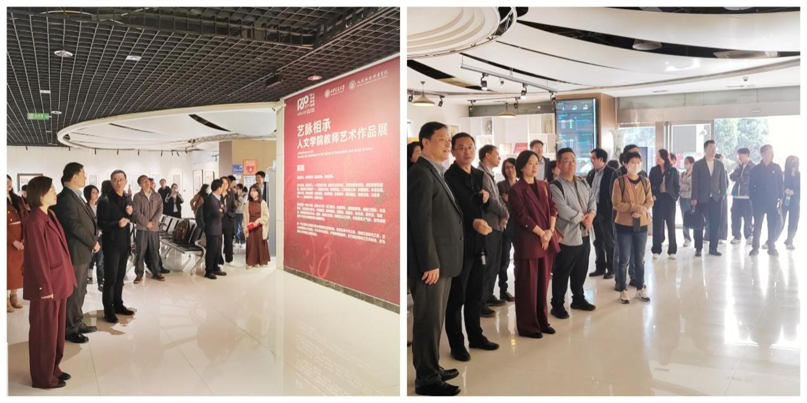 活动伊始,全体党员在王劲和艺术设计系党支部书记苗祥瑞的讲解和引导下,参观了“艺脉相承——西安交通大学人文学院教师艺术作品展”。展览荟萃了艺术设计系、中国书法系23位教师的87件书法、绘画及雕塑精品。党员们驻足于笔墨丹青与刀痕塑影之间,不仅领略了中华优秀传统文化的独特魅力,更在艺术的熏陶中感悟交大人文精神的深厚积淀。