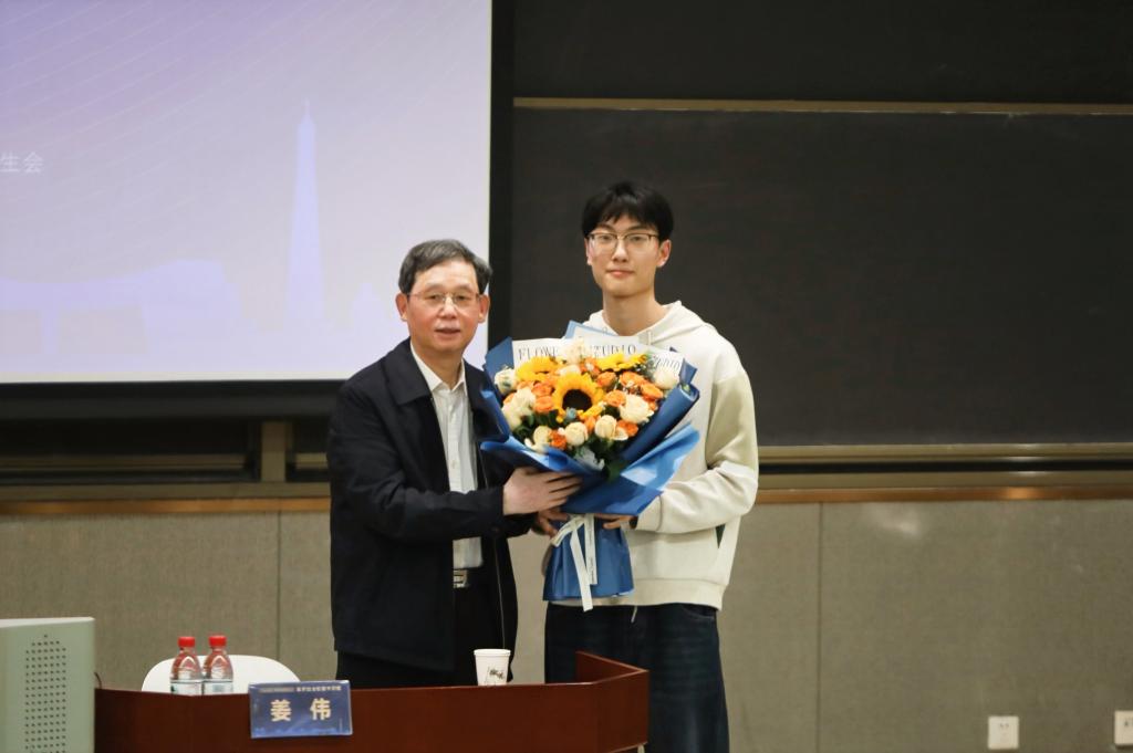 李万强教授对讲座进行总结,并感谢姜伟副主任来校传经送宝,期待他再次来校交流。学生代表向姜伟副主任献花。