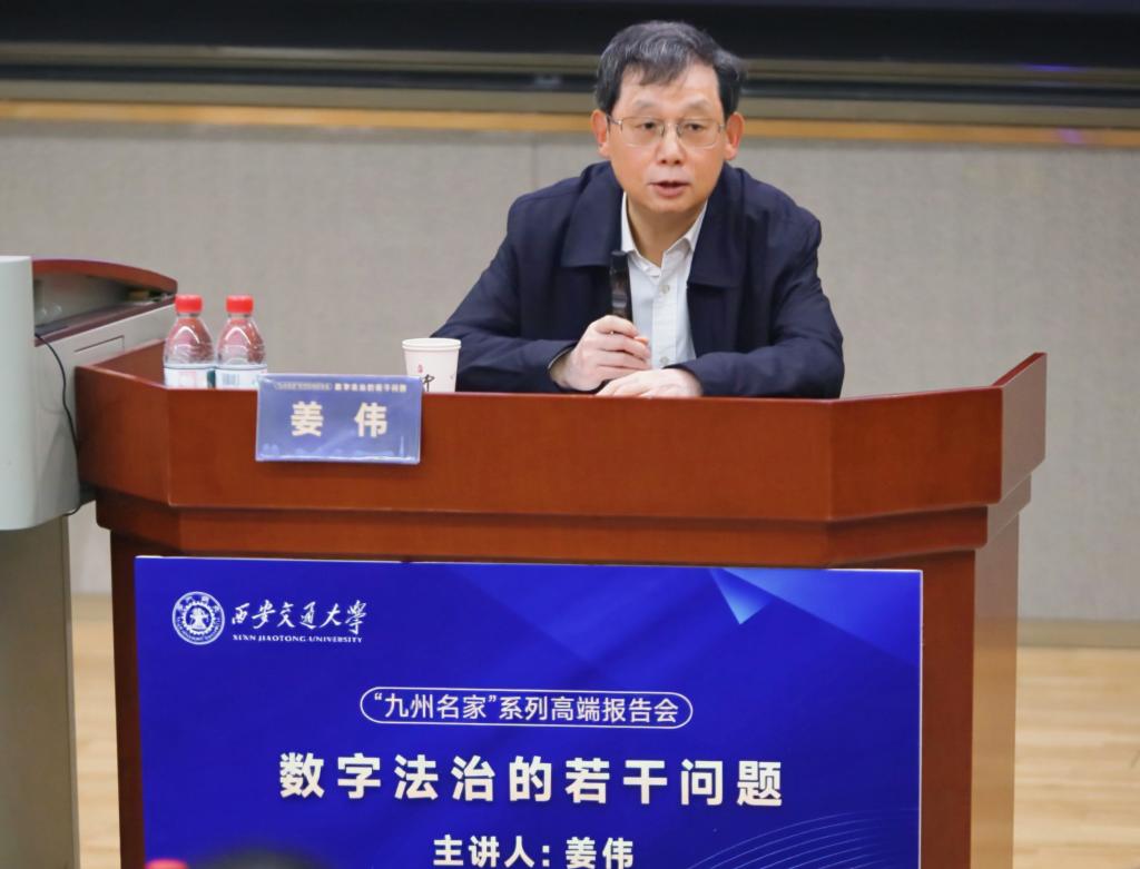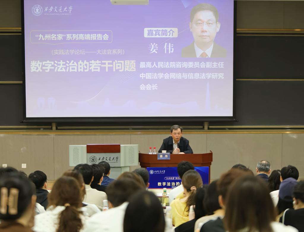 近日,最高人民法院咨询委员会副主任、中国法学会网络与信息法学研究会会长姜伟做客西安交大“九州名家”系列高端报告会(暨实践法学论坛——大法官系列),以“数字法治的若干问题”为题为交大师生带来了一场兼具理论深度与实践广度的精彩学术报告。报告会由法学院副院长李万强教授主持,陕西省高级人民法院民三庭胡晓晖庭长、法学院副院长丁卫副教授以及全校近200名师生代表参加此次报告会。