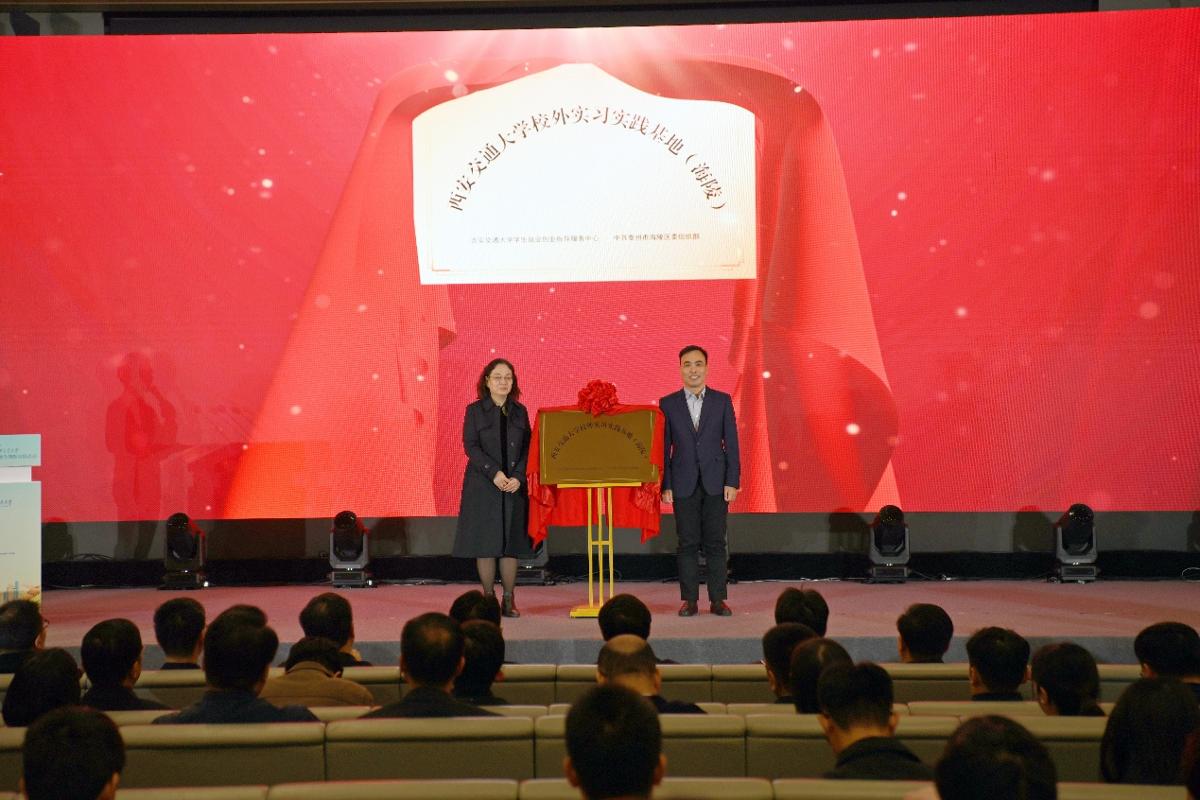 西安交通大学校外实习实践基地(海陵)揭牌成立。现场播放了“引凤观海”城市体验营招募视频,并向西安交大部分学子颁发了“扬帆海陵”青春推介官聘书。