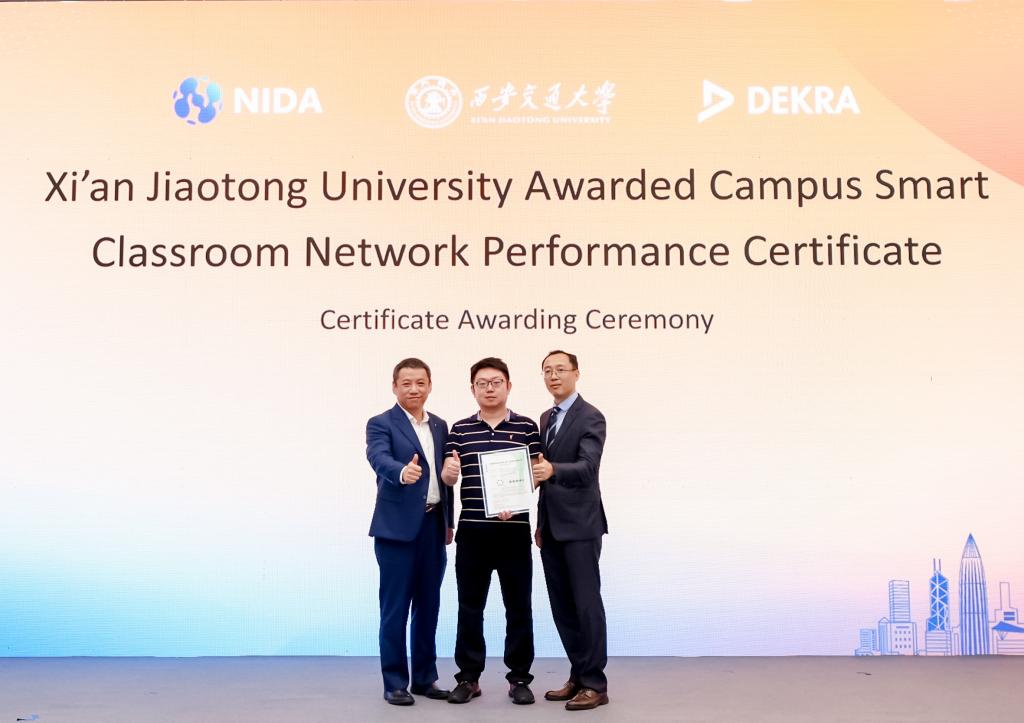 在近日于深圳举办的第三届网络创新发展论坛上,西安交通大学获得了由全球专业的检验检测认证机构DEKRA德凯与全球固定网络创新联盟(Network Innovation and Development Alliance, 简称NIDA)联合颁发的校园网络评估证书。