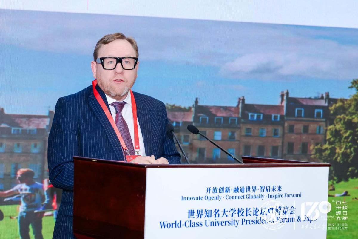 巴斯大学校长、英国皇家工程院院士费尔·泰勒介绍了巴斯大学近年来在人才培养、科学研究等方面取得的成绩和与西安交通大学的合作成果。他表示,当今人类所面对的各项技术难题日益复杂化,各国高校正承受着前所未有的挑战与考验。在此背景下,高校不能固守传统的人才培养模式,而应着力构建真正意义上的跨学科、产学研深度融合的科研生态,让学生从本科阶段参与真实的科研项目,在解决实际问题的过程中锤炼学术能力、培养创新思维,最终成长为具有坚定合作精神的高素质复合型人才。希望全球各高校始终保持开放包容的心态、坦诚务实的态度,并坚守长期合作的初心。巴斯大学愿始终与西安交通大学及其他全球合作伙伴并肩前行,携手共进,共同推动高等教育的繁荣发展。