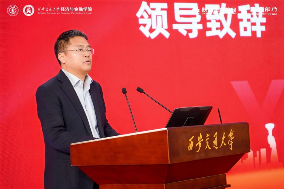 钱学宁在致辞中向学校表示祝贺。他高度评价了西安交大经金学院深厚办学底蕴与学科实力,介绍了中国首席经济学家论坛的发展与影响力。他表示,论坛将与西安交大深化合作,围绕课题研究、人才培养、产业孵化、学术交流等方面协同发力,推动学界与业界深度融合,共同构建中国特色经济金融理论与实践体系,服务国家“十五五”发展大局。