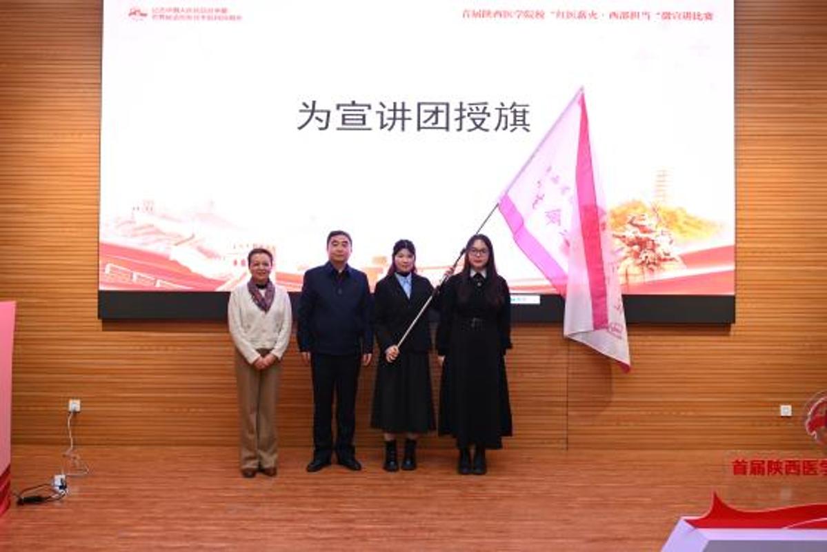 随着宣讲氛围的愈加浓厚,现场举行陕西省保健学会医学人文专委会“生命之光”宣讲团成立仪式。由陕西省保健学会医学人文专委会会长和新颖宣读成立公告,安海胜、王岚为宣讲团授旗,陈晨为首届成员颁发聘书。未来,“生命之光”宣讲团将走进学校、社区、乡村、企业,围绕红色医学史、医学人文、健康科普等主题开展宣讲,打造西部医学青年“行走的思政课”新IP。