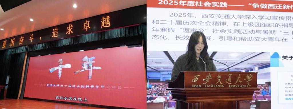 为深入学习贯彻习近平新时代中国特色社会主义思想,贯彻落实党的二十届四中全会精神,以新时代立德树人工程为牵引,着力打造实践育人大课堂,系统总结并展示2025年度社会实践育人成果,12月3日,以“爱国奋斗,追求卓越”为主题的西安交通大学第十届社会实践青年研究年会在兴庆校区举行。党、校办,宣传部,统战部,教务处,学生处,招生办公室,教育基金会,团委,电信学部,航天学院,医学部,公共卫生学院,马克思主义学院等相关单位负责人及入围展示的各实践团队师生代表参会。