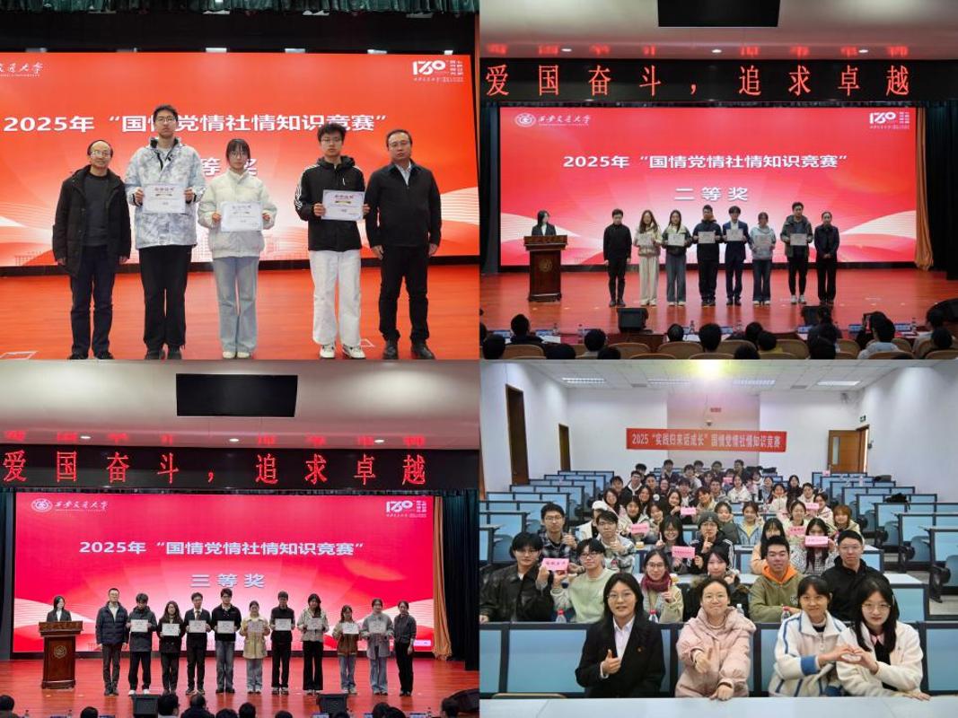 大会现场举行了2025-2026学年“实践归来话成长”国情党情社情知识竞赛颁奖仪式。本届竞赛依托《实践归来话成长知识手册》,吸引了709支团队、超过2800名学子踊跃参与。经过初赛、复赛及决赛的激烈角逐,最终18支队伍脱颖而出。与会嘉宾依次为荣获一、二、三等奖的队伍代表颁奖,鼓励同学们以赛促学、知行合一。