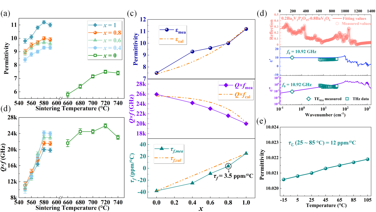 【科技自立自强】西安交大电信学部科研团队在AFM上发表新型温度稳定型(1-x)Ba3V2P3O15-xBaV2O6超低温烧结微波介质陶瓷最新研究进展