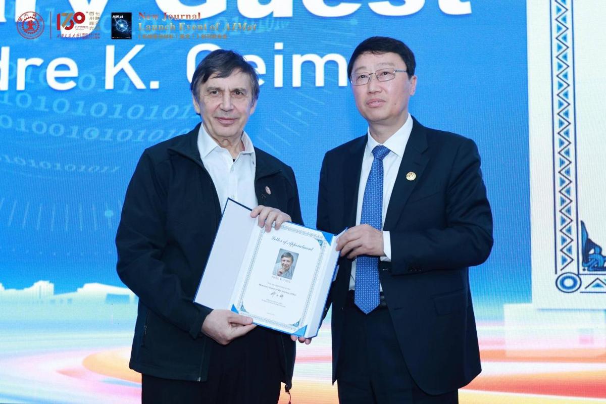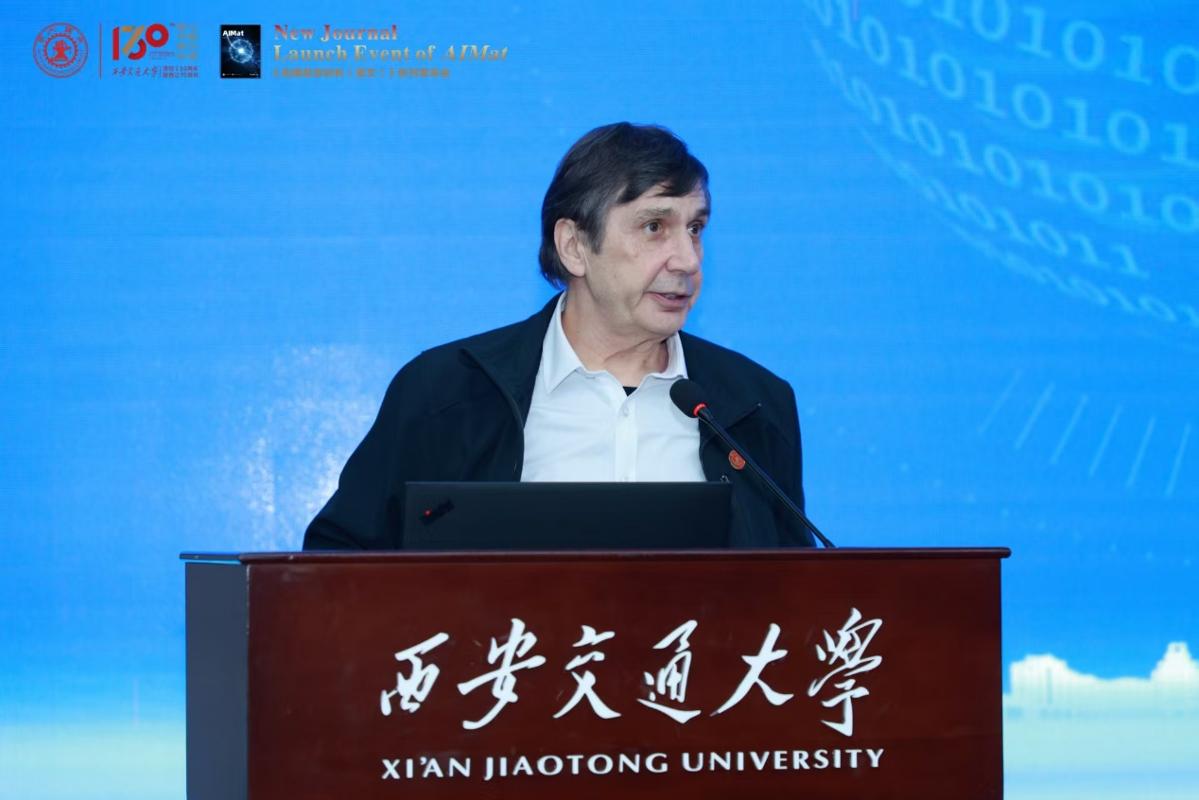 安德烈·海姆在致辞中分享了他多年来见证中国科学技术飞速发展的感受。他表示,中国在二维材料等领域已处于世界引领地位,西安交通大学作为中国历史最悠久的高等学府之一,在基础研究与实际应用之间搭建起重要桥梁。创新材料正在成为未来科技最基础的构筑单元,AIMat正是在这一转型趋势中应运而生、抢占先机。他期待期刊能够吸引全球最具创新性的研究成果,成为代表西安乃至整个中国蓬勃科学精神的旗舰期刊,并鼓励在座科研工作者和同学们“期待意想不到的发现,永远不要害怕去探索未知”。