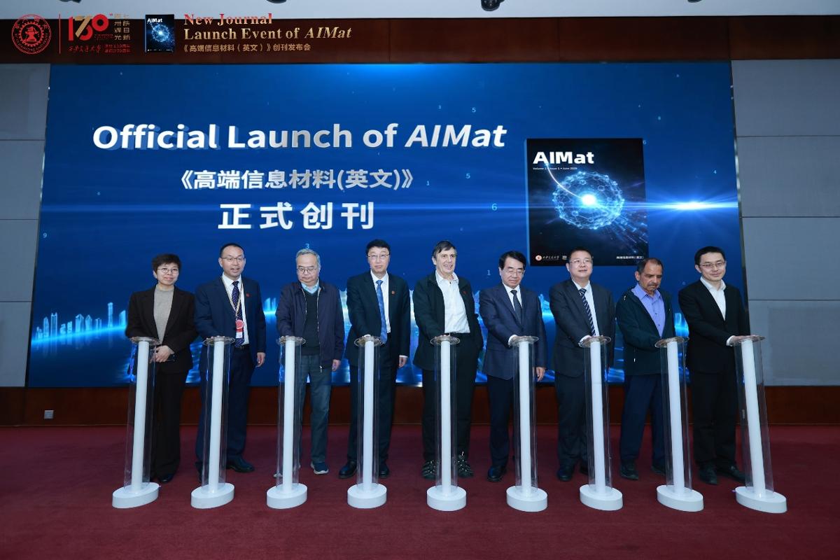 安德烈·海姆、张立群、黄维、孙军、李豫琦、单智伟、Turab Lookman、阳化冰、张丛共同按下启动键,标志着AIMat正式创刊。