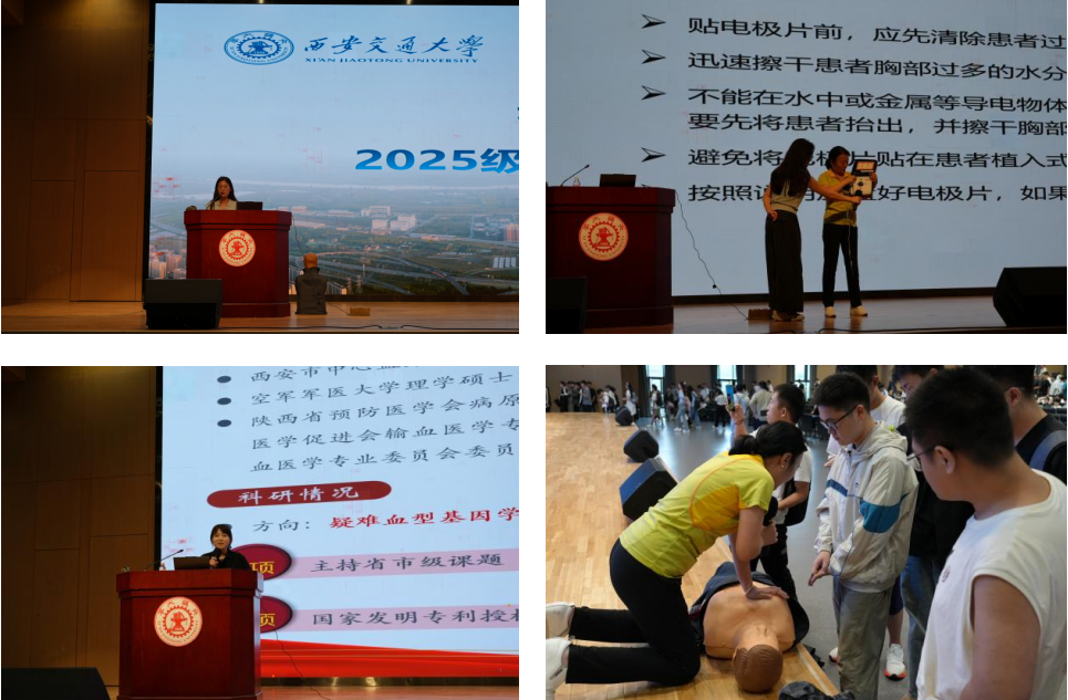 9月17日,学院邀请到西安交通大学医院主任医师、陕西省红十字会急救培训师周哲人为同学们讲解了心肺复苏(CPR)、自动体外除颤器(AED)使用等实用急救技能,通过假人实地演示等互动,提升了新生应对突发状况的自救互救能力。陕西省血液中心血型研究一室副主任、主管输血技师褚晓月博士从专业角度深入浅出地介绍了血液生理知识、无偿献血的意义及注意事项,激发了同学们参与公益、奉献爱心的热情。讲座将理论与实践相结合,强调了关爱生命、服务社会的重要性。