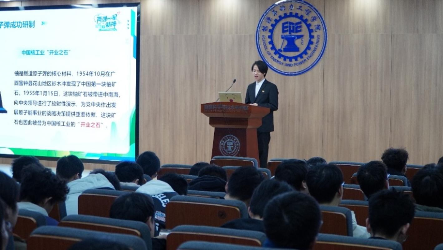 为引导青年学子将个人成长融入国家发展大局,11月22日,能动学院2025级核科学与技术硕士第一党支部,数学与统计学院硕2025级第二党支部,机械工程学院硕5013、5015班党支部,外国语学院硕5123、5124、5125、5126班党支部联合开展主题党日活动。外语学院辅导员巩倩倩、能动学院辅导员马嘉谊以及各支部全体党员和积极分子共同参与本次活动,外国语学院硕5123班党支部书记郭沁坤主持活动。