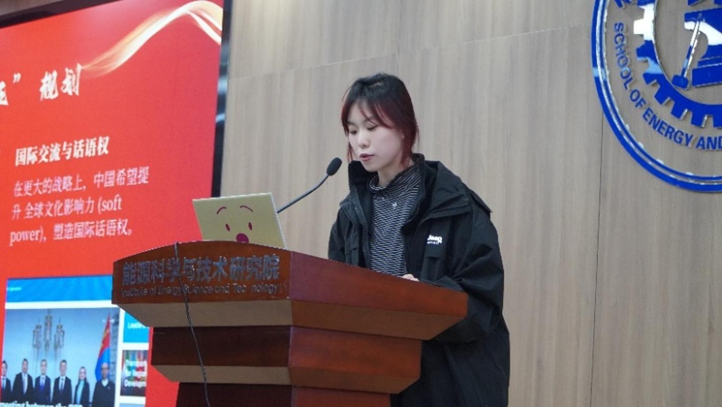 各学院代表举行了主题分享。其中,外语学院楚思齐立足学科特色,以《多语言文化视角下的“十五五”规划解析》为题,深入探讨了如何运用多语言优势,在全球舞台上精准传递中国式现代化的理念与实践。能动学院朱禹翰聚焦“十五五”规划对海洋可再生能源发展的启示,讲述了海洋可再生能源国家战略规划。来自机械学院的梁健以《“十五五”工业机械前景》为题,分析了国家战略锁定工业母机的核心地位。数统学院刘小民以《以数据之尺,量发展蓝图》为题,从个人角度出发,表示将立志参与“十五五”规划的量化评估和聚焦重点赛道的微观数据分析。