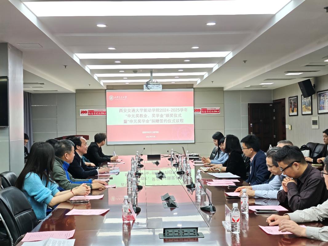 11月29日下午,西安交通大学能源与动力工程学院在兴庆校区北二楼1410会议室举行2025年“申元奖教金、奖学金”颁奖仪式暨“申元奖学金”捐赠签约仪式。此次仪式旨在表彰在教学和科研中表现突出的师生,并加强与沈阳申元气体压缩机有限责任公司的深度合作。能动学院师生代表与沈阳申元气体压缩机有限责任公司领导齐聚一堂,共同见证这一荣耀时刻。