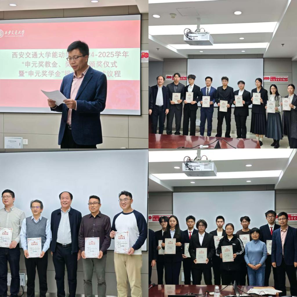 随后由何志龙宣读2025年能动学院“申元奖教金”“申元奖学金”的获奖决定。并由赵东升、刘昶志、韦娜、何志龙、郭蓓分别为获奖教师及研究生、本科生分别颁发了获奖证书,并向获奖学生表示祝贺。此次共有5位教师获得“申元奖教金”,17名学生获得“申元奖学金”,其中研究生8名,本科生9名。
