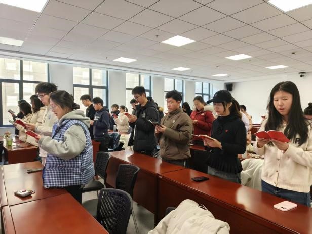 随后,公卫学院学子与法学院、药学院以及国家储能技术产教融合创新平台三院学子,共同开展了庄严的宪法诵读活动。四院学子手持《中华人民共和国宪法》读本,精神饱满地齐声诵读宪法部分章节。此次跨学院联合活动,让公卫学子从法学视角深化了对法治原则的理解,进一步认识到法治在规范公共卫生实践、保障人民健康权益中的根本性作用。