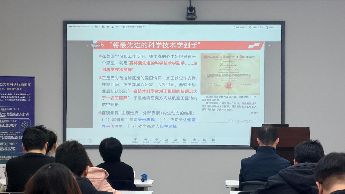 会上,上海交通大学钱学森图书馆学术研究部副部长汪长明从历史与科学的双重维度解读了钱学森的传奇人生。汪长明用“三段论”概括了钱学森从技术科学、工程技术到基础科学体系的学术跃迁,并分析了其“理论联系实际”的方法论贡献。最后,他以钱学森的三句话进行总结——从早年的“报国宣言”,到中年的“归宿在中国”,再到晚年“需要更多钱学森”的期许,号召全体环境学子传承老一辈科学家的红色基因,投身国家生态文明建设。