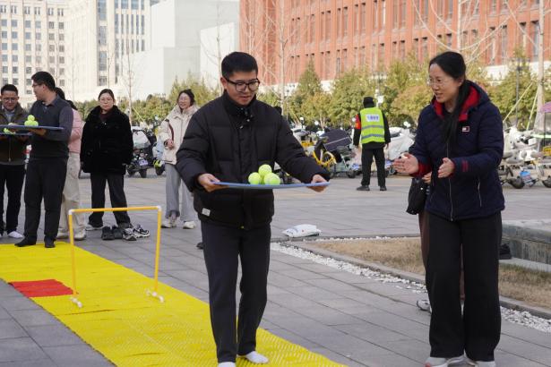 本次运动会特邀校体育中心张斌南教授担任总裁判,并由15名研究生志愿者协助赛事组织与裁判工作,确保比赛公平有序进行。活动共设置“声轨迷航”“绳律惊鸿”“中国机长”“步步生莲·掌中弈”四项趣味竞赛项目,既考验个人反应与技巧,更注重团队协作与策略配合。各教研室与研究院代表队以每组不少于10人的阵容展开角逐。赛场上,队员们全情投入、默契配合;赛场边,助威声、欢笑声此起彼伏,展现了电气人昂扬向上、和谐奋进的精神风貌。