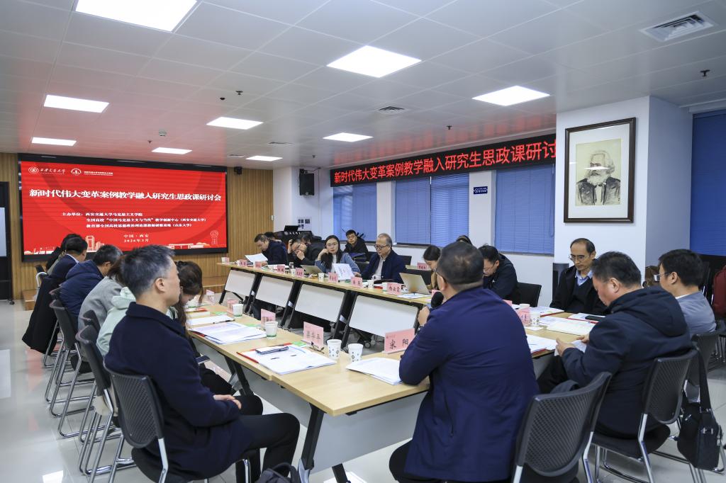 3月17日,新时代伟大变革案例教学融入研究生思政课研讨会在西安交通大学兴庆校区召开。本次研讨会由西安交通大学马克思主义学院、全国高校“中国马克思主义与当代”教学创新中心(西安交通大学)、教育部全国高校思想政治理论课教师研修基地(山东大学)联合主办,省内外多所高校马克思主义学院负责人、思政课骨干教师及专家学者40余人参加会议。