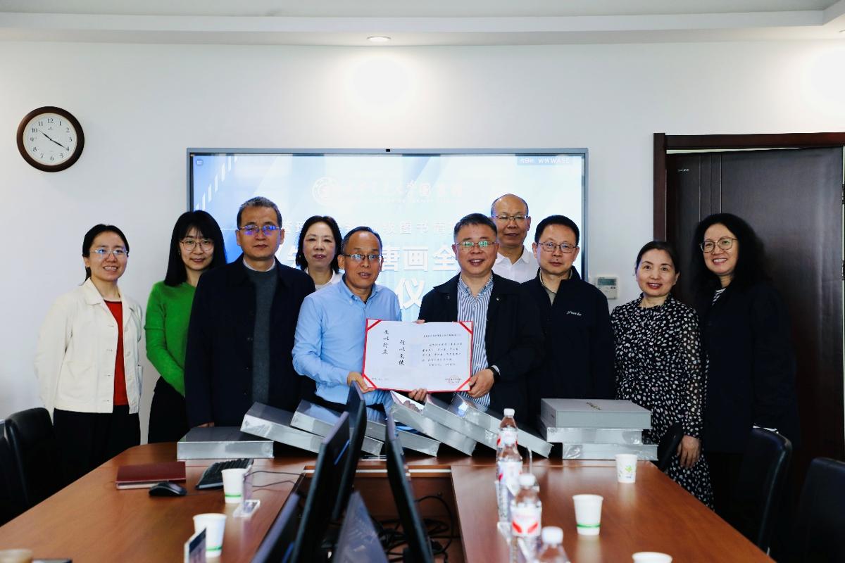 4月12日上午,一场简朴而隆重的赠书仪式在西安交通大学图书馆举行。原西安交大87级情报71班校友借返校聚会之机,集体决定向母校图书馆捐赠国家重大出版工程“中国历代绘画大系”的最新成果——《先秦汉唐画全集》。校友代表张军、彭爱钟、佟琼、施瑾、罗庆、郝雨生,图书馆副馆长杨峰、魏青山,资源建设部主任李凌,办公室主任张一翠出席仪式。
