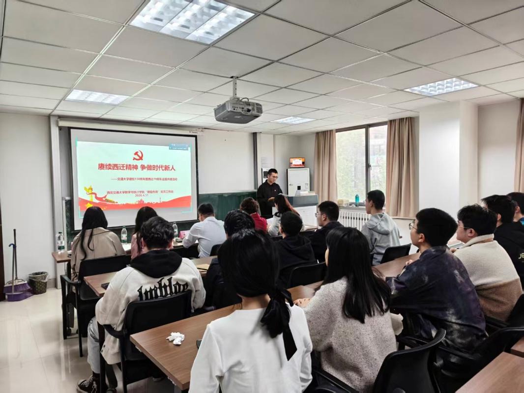 百卅弦歌不辍,七秩薪火相传。为深入学习习近平总书记给四所交通大学全体师生重要回信精神,传承弘扬西迁精神,加强四校支部交流共建,4月11日,由西安交通大学数学与统计学院“数励先锋”党员工作站组织开展“赓续西迁精神 争做时代新人”主题共建活动。西安交通大学、上海交通大学、西南交通大学、北京交通大学四校数学学科师生党员云端相聚,共同回望交大峥嵘岁月,传承弘扬西迁精神,交流党建工作经验。西安交通大学数学学院党委副书记李义宝,励志书院党总支书记、院务主任徐慧,院务副主任库来西·依布拉音,以及学院、书院党建秘书及各学校辅导员代表、本硕博党员代表出席会议。本次活动由“数励先锋”党员工作站副站长陈嵘汉同志主持。
