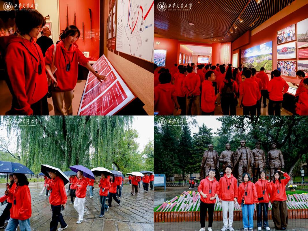 在延安革命纪念馆,一件件文物、一幅幅照片,都在无声地诉说。同学们在陈列窗前驻足、凝视,那些曾经只在书本上见过的名字和故事,此刻变得触手可及。而在雨中的枣园革命旧址,湿润的空气中似乎还弥漫着当年的气息。大家走过伟人工作过的窑洞,抚过露天的石桌,仿佛能看到灯火下运筹帷幄的身影,听到黄土高原上决定中国命运的铿锵足音。