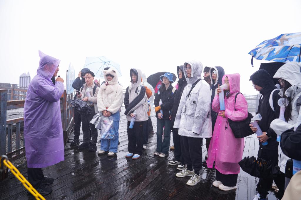 9月28日,同学们乘坐索道抵达海拔3900米区域,实地考察第四纪冰川遗迹,观察冰川擦痕、冰斗湖等地质形态,并听取专家对苍山地质构造与高寒生态系统的讲解。在观景平台,同学们齐声高唱《歌唱祖国》,用歌声表达爱国之情与奋斗之志。