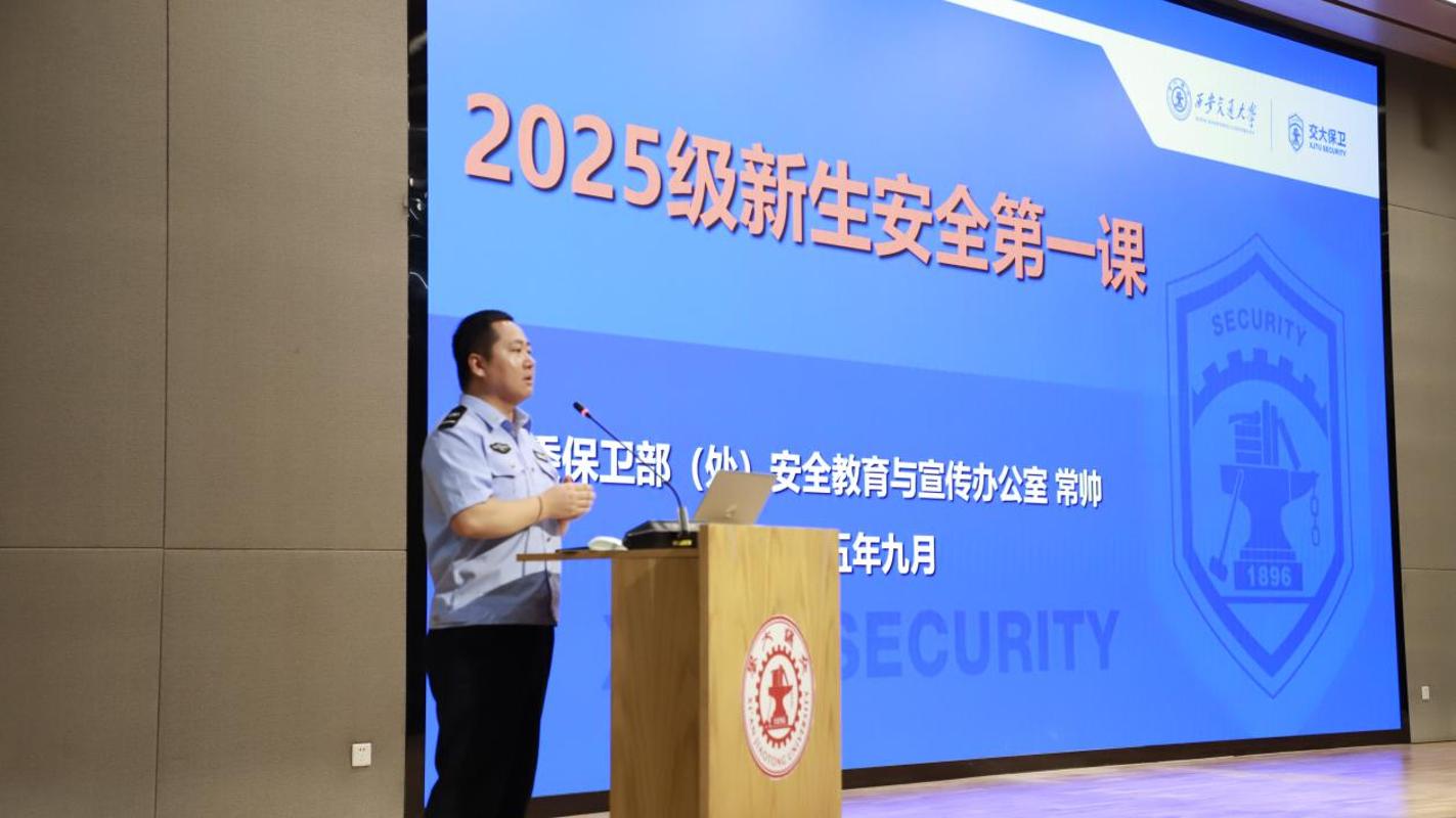 “校园安全没有旁观者,每个人都是第一责任人”,常帅呼吁全体新生自觉遵守法律法规与校园规章制度,树立底线思维和责任意识,从自身做起维护校园安全稳定,努力成长为有担当、守纪律的新时代青年,为建设平安校园贡献力量。