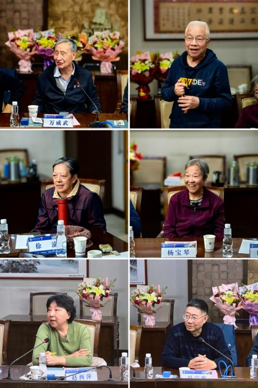 座谈会上,李怀祖等老教授依次发言,老师们满含对往昔的追忆与对校友的牵挂,勉励大家始终将学院严谨务实的精神铭记于心、践行于行,为社会发展延续奋斗力量,叮嘱校友多关注身体健康,常回母校看看。