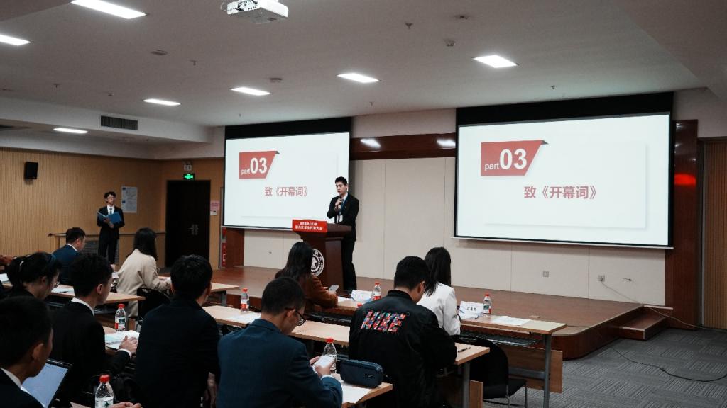 吴政豪同学代表大会筹备委员会致开幕词。他向与会领导、嘉宾和全体代表表示热烈欢迎,向关心支持学生会工作的师生致以诚挚感谢。他回顾了过去一年学生会在思想引领、组织建设、权益服务、文体融合等方面取得的扎实进展,表示新一届学生组织将以此次大会为起点,继续秉持“全心全意为同学服务”的宗旨,团结带领广大同学奋发进取,在服务书院发展与时代使命中书写更加精彩的青春篇章。