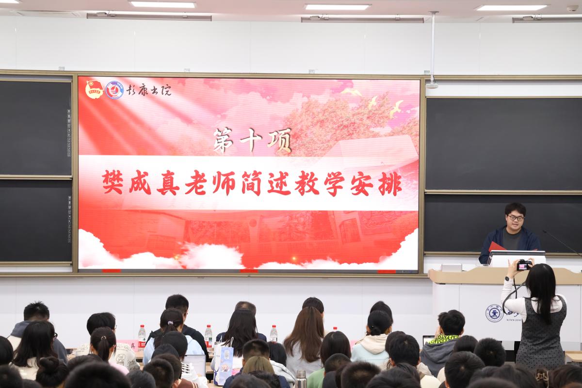 彭康书院辅导员、“鹏飞计划”班主任樊成真向团员们介绍 “鹏飞计划” 教学安排与学员管理细则。他结合学校西迁历史及校训,激励学员在课程学习中提升理论与实践能力,积累知识的同时,涵养作为团员的荣誉感。