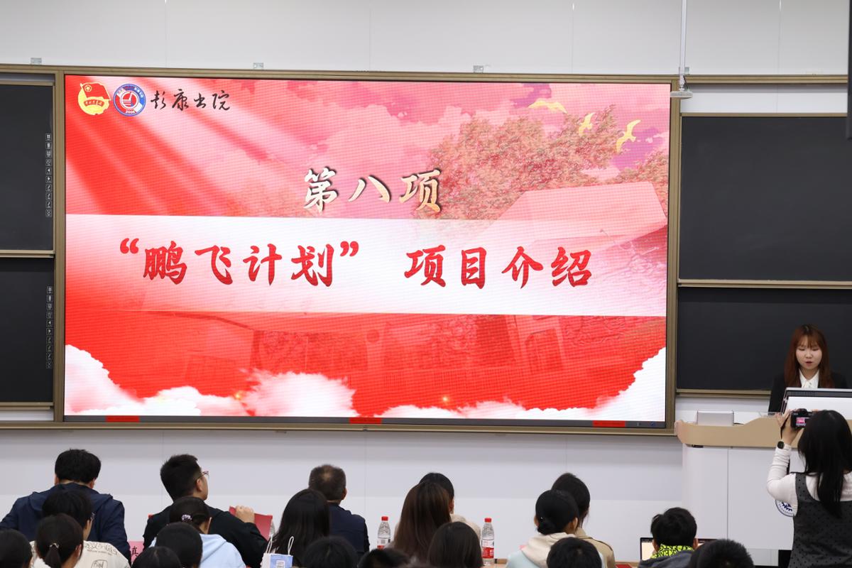 彭康青年团校部长郭禹君向团员介绍“鹏飞计划”项目的目的、课程内容以及考核方式,鼓励成员们认真学习马列思想,在课程中培养作为优秀团员的素养。