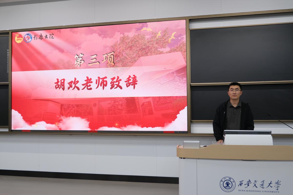 会上,胡欢老师致辞,肯定班团骨干过往工作,勉励大家以2024-2025 学年优秀学生标兵谢春澜、李倬妍等优秀学员代表为榜样,践行西迁精神、在实践中提本领,明确其 “师生桥梁、活动核心、书院帮手” 三要求,并叮嘱班团骨干要强化责任、注重服务、兼顾学业与成长。