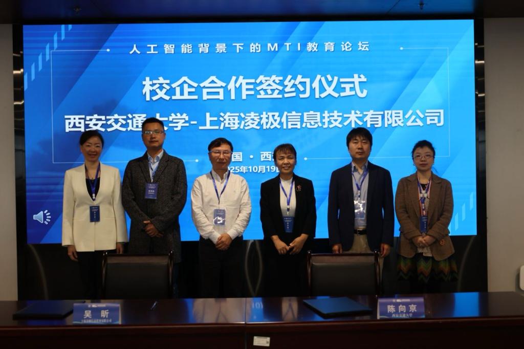 在企业代表发言环节,西安国际医学投资股份有限公司副总裁丁震、上海凌极信息技术有限公司总经理吴昕、中译语通科技股份有限公司语言服务事业群总监陈栋、北京如文思科技信息咨询有限公司医药翻译部经理史雅菁先后从不同维度分享了来自产业一线的见解。他们一致指出,当前市场对翻译人才的需求正向专业化、技术化的综合语言服务解决方案转变,并表达了与高校深化合作、共同推进人才培养的意愿。随后,西安交通大学外国语学院分别与西安国际医学投资股份有限公司、上海凌极信息技术有限公司举行了校企合作签约仪式。
