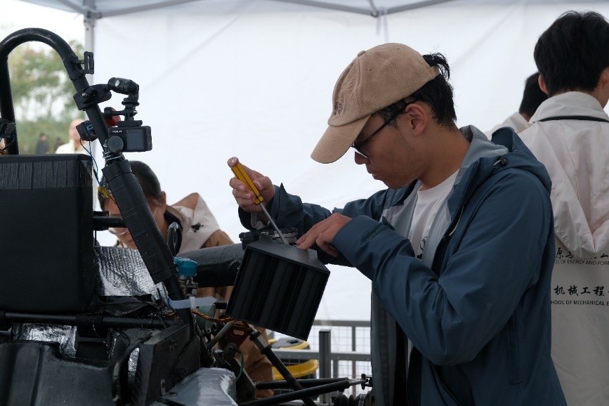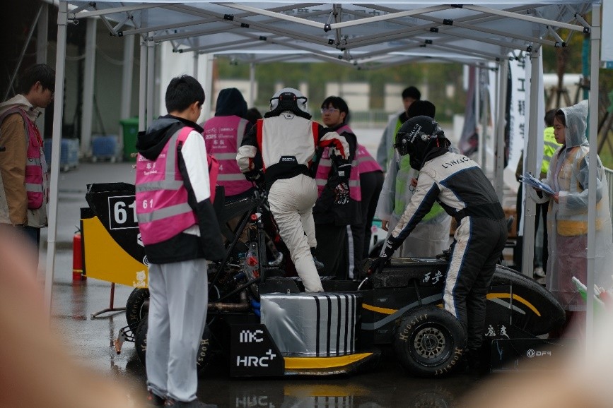 开赛第二、三天进行静态、动态车检。车检内容是衡量参赛车辆的重要标准,包括车轮外观、底盘、座舱空间、发动机等十余大项全面且入微的指标,任何一项没有通过检查,车辆均不能驶上赛道。面对换挡失效、卡钳故障和进气断裂等问题,毅行队员以高效率和专业素质分析解决问题,最终XR25B通过了数百道严格的车检。