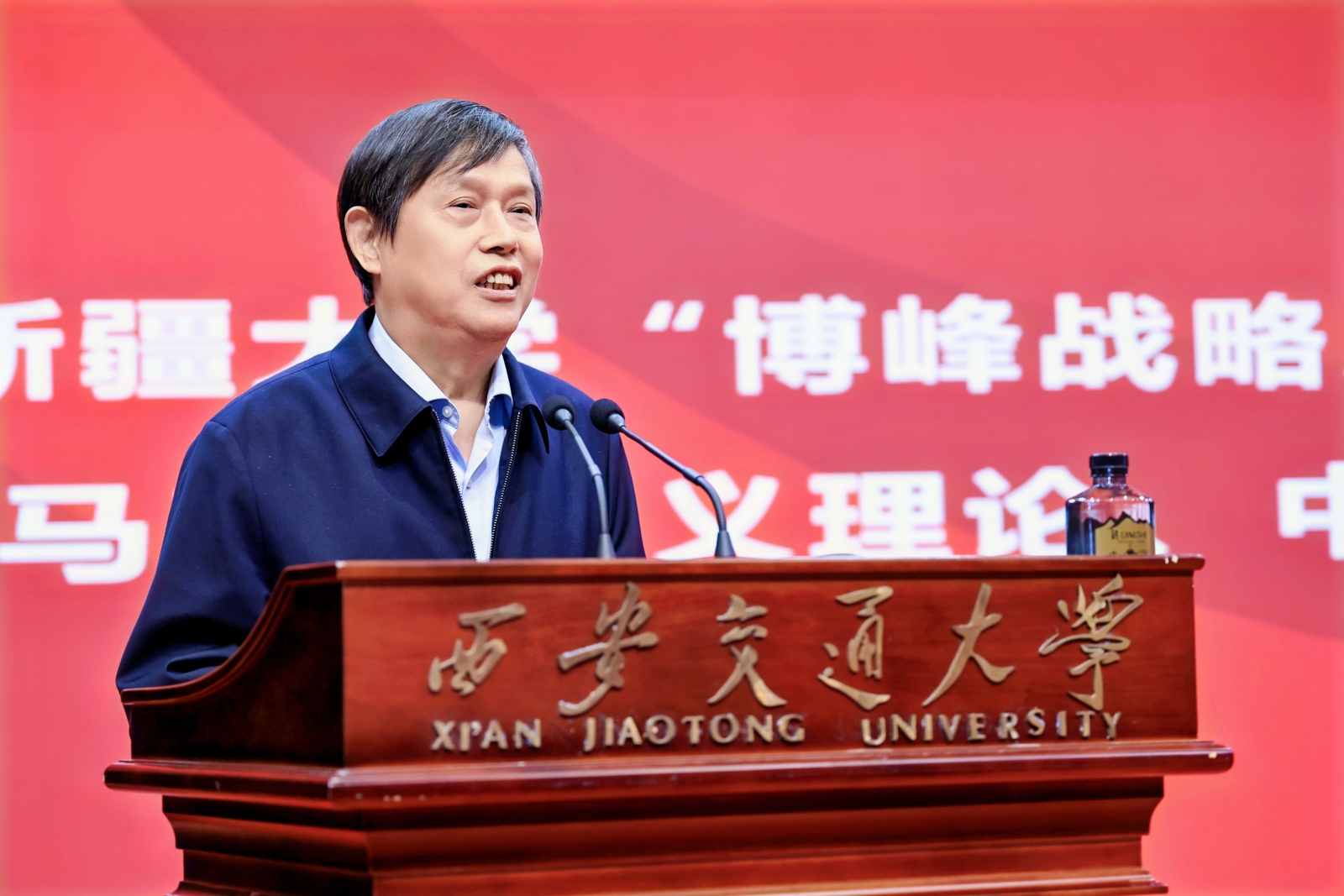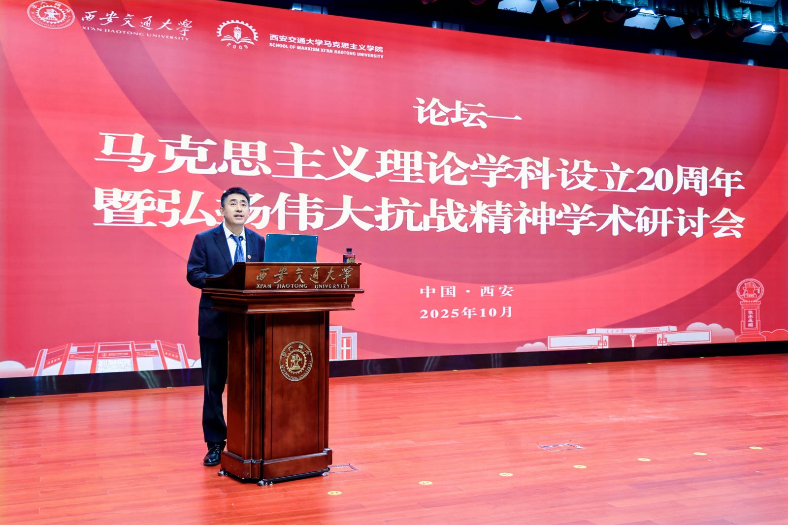 10月18日,在西安交通大学马克思主义学院建院16周年暨独立设置10周年院庆活动期间,“马克思主义理论学科设立20周年暨弘扬伟大抗战精神学术研讨会”在兴庆校区举行。中共中央党史文献研究院第四研究部原主任崔友平教授,清华大学首批文科资深教授、教育部高校思想政治理论课教学指导咨询委员会主任委员吴潜涛教授,新疆大学“博峰战略人才”、武汉大学原党委副书记、国务院马克思主义理论、中共中央党建学学科评议组召集人骆郁廷教授,北京化工大学党委书记、教育部高校思想政治理论课教学指导咨询委员会副主任委员刘贵芹研究员等国内100余家马克思主义学院的学者和师生代表在线下参加活动。教育部高校思想政治理论课教学指导委员会总教指委主任委员、中国人民大学原党委书记靳诺教授在线上作主旨报告。研讨会由西安交通大学马克思主义学院院长燕连福主持。