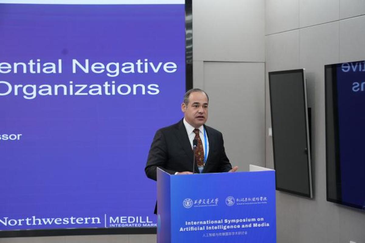 10月26日,人工智能与传媒国际学术研讨会在中国西部科技创新港一号巨构举办。本次研讨会由西安交通大学新闻与新媒体学院主办,学院院长汪文斌教授担任大会主席。研讨会邀请来自中国、德国、法国、美国等国家和地区的知名学者参会,就智能背景下的新闻传播研究的创新问题、智能背景下的新闻传播研究范式创新、新闻传播学科在智能背景下的机遇与挑战等议题展开深入交流与讨论。西安交通大学新闻与新媒体学院党委书记薛周利、国际处副处长孟祥丽出席会议。