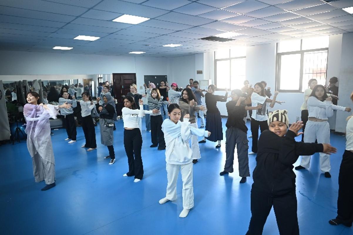 同学们以小组为单位,与老师共同演绎所学片段,在镜头前留下动人的舞姿。来自波黑的计算机科学与技术专业学生李如嫣分享道:“这两小时的体验超乎想象。音乐响起的那一刻,瞬间被带入情境。虽然刚开始手脚不协调,像只笨企鹅,但当连贯跳完一段时,那种成就感难以言喻。虽然浑身酸痛,却特别开心,仿佛通过舞蹈触摸到了千年文化的温度。”