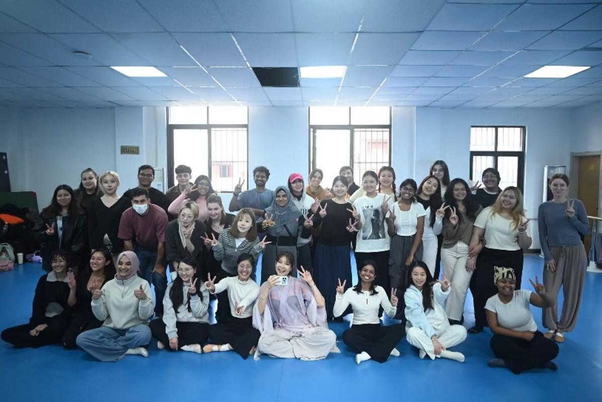 为促进国际学生深入了解中华优秀传统文化,10月28日下午,西安交通大学国际教育学院品牌项目《中华文化学堂》第十五讲——“中国舞大师体验课”在兴庆校区举行。本次活动特邀资深中国舞导师李佐俊秀现场授课,由国际教育学院蔡鑫妍老师担任翻译,吸引了来自阿根廷、斯里兰卡、突尼斯、阿富汗、法国、约旦、澳大利亚、韩国、斐济、摩洛哥等22个国家的近30名国际学生参与,共同沉浸于中国古典舞的韵律之美。