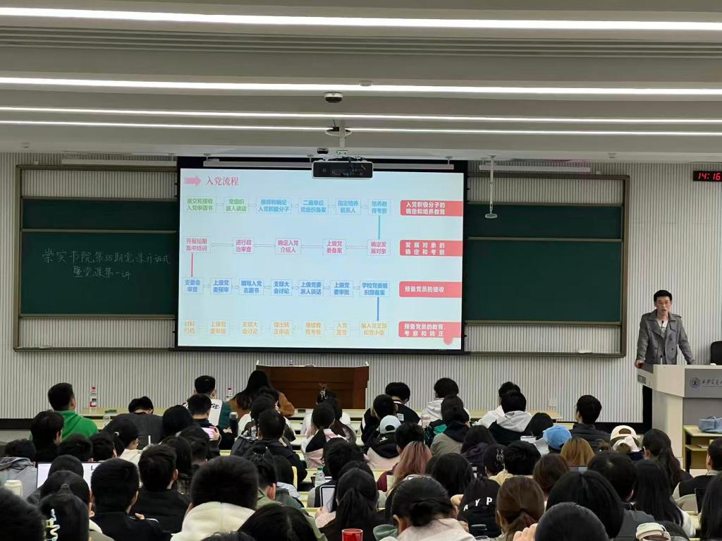 薛成从书院发展党员工作要求出发,解读了本期党课课程设置、考核内容及注意事项,重点介绍了微党课大赛的相关要求。薛成寄语全体同学端正学习态度、筑牢思想根基;注重学思践悟、提升培训实效;发挥模范作用、积极担当作为;严守培训纪律、规范学习秩序。希望同学们通过党课学习有所收获,积极向党组织靠拢,不断提升自身本领,早日成为一名合格的共产党员。