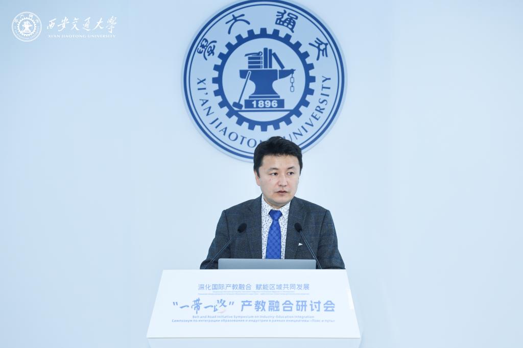 阿纳尔巴耶夫·马克萨尔别克以“融合走廊建设:吉尔吉斯斯坦与中国的教育、人才、产业协同联动典范”为主题,分享了该校与西安交大在建设“一带一路中吉清洁能源及储能联合实验室”中的实践经验,指出国际产教融合必须以契合多方利益的务实合作项目才能实现可持续发展。