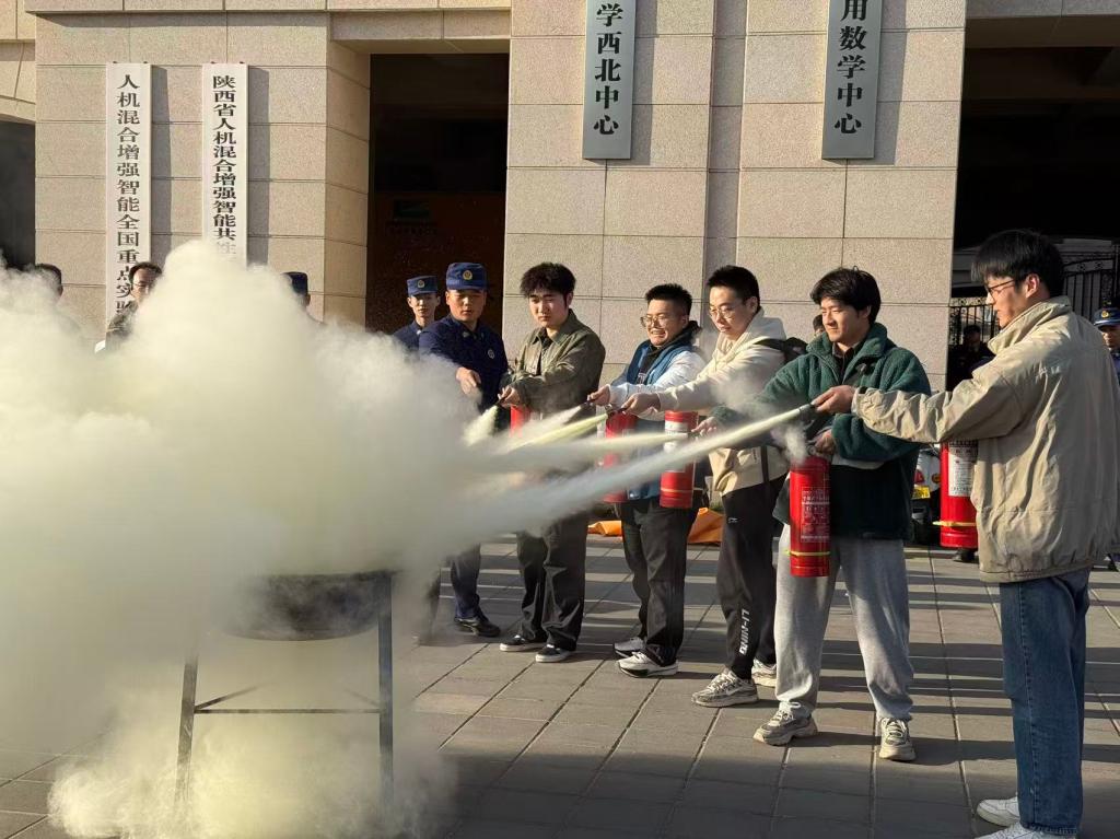 疏散结束后,校保卫处联合西咸新区沣西消防支队、长城物业公司组织师生开展消防安全实操训练。沣西消防支队消防员为大家做了消防灭火工具展示及灭火器灭火演练,保卫处为师生开展灭火器实操训练,同学们积极参与干粉灭火器模拟灭火体验活动,对灭火器操作有了更加清晰的掌握。